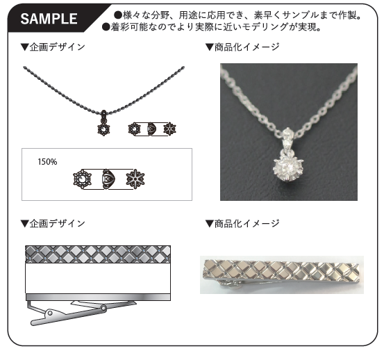 ●こだわりの商品だから3Dプリンターで原型サンプルを出力し、手に取って形状確認可能。